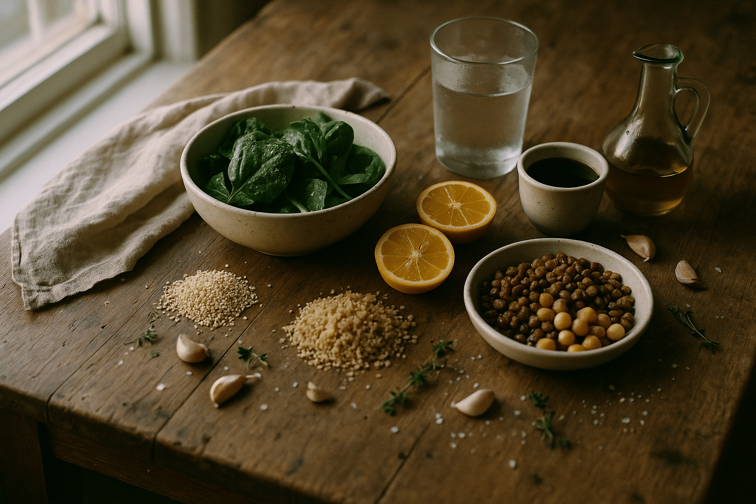 – Pantry: brown rice, quinoa, oats, lentils, beans, low-sodium broths, olive oil.